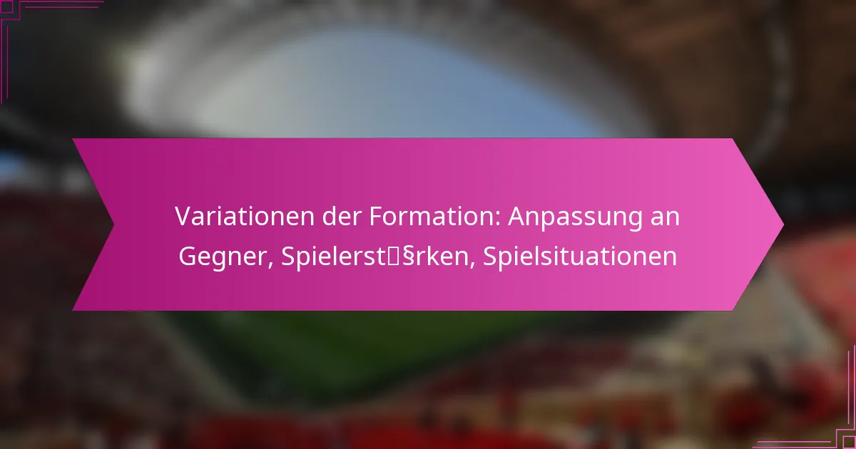 Verschiedene Spielsituationen erfordern unterschiedliche Formationen, um die Teamleistung zu optimieren. Faktoren wie der aktuelle Spielstand, die Stärken des Gegners und spezifische Spielkontexte beeinflussen taktische Anpassungen, die die Erfolgschancen eines Teams erhöhen können.